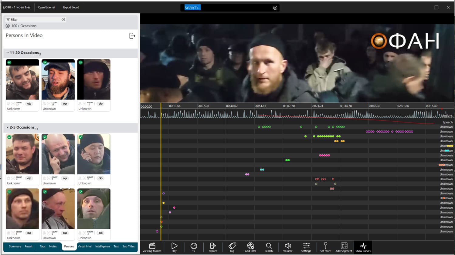 To analyse the video in this level of detail, Paliscope YOSE was used to compile the faces of prison conscripts and identify where in the video they appear.