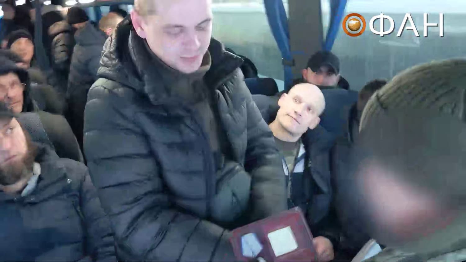 - 02:11 – 02:19s: Medals are being awarded to various prisoners while sitting inside a bus. The bus is also shown to be in motion.
