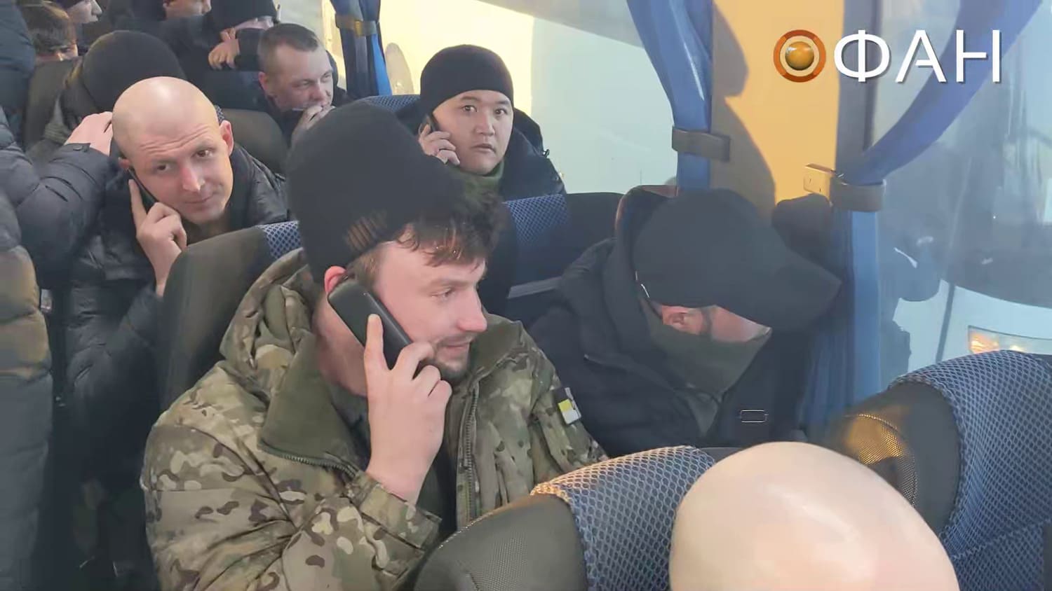 - 02:20 – 02:29s: Prisoners are seen using mobile devices while the bus is stationary alongside another bus.