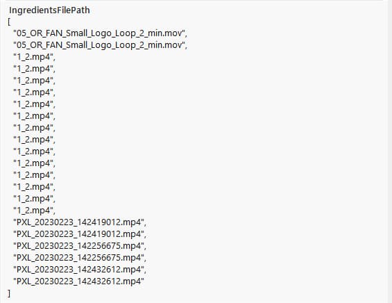 Going further, we can also see that the Pantry project file path points to a user named ‘Sergey’. Additionally, the user stored the Adobe Photoshop project file in a folder named ‘FAN_2021’. The IngredientsFilePath, which in this case details the separate files used to create the final video file shows several inconsistencies.
